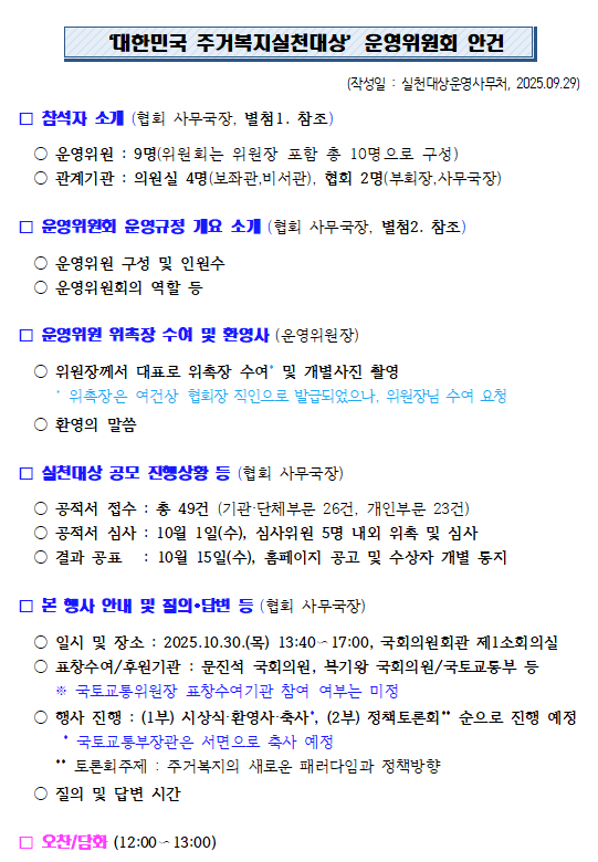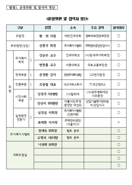 "´ëÇѹα¹ Áְź¹Áö½Çõ´ë»ó" Çà»çÀÇ ¼º°øÀû °³ÃÖ¸¦ À§ÇÏ¿© ¾Æ·¡¿Í °°ÀÌ ¿î¿µÀ§¿øÈ¸¸¦ ¿­¾ú½À´Ï´Ù.